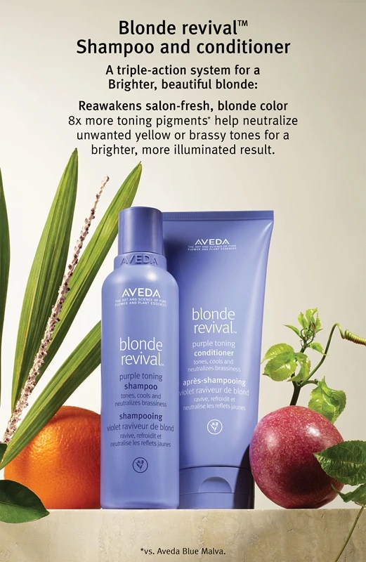 Pour un résultat optimal, combinez avec le shampoing tonifiant violet pour les cheveux avec décoloration ou balayage Aveda Revival™ Purple Toning Shampoo.