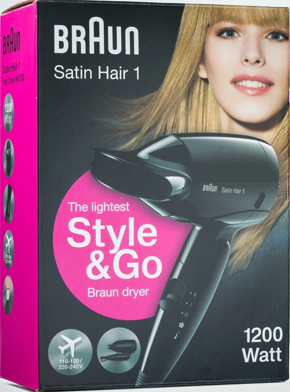 Il n’y a pas toujours de sèche-cheveux dans les chambres d’hôtel. Emportez le sèche-cheveux de voyage Braun Satin Hair 1 Style & Go HD 130 avec vous pour être certaine de toujours avoir de beaux cheveux, où que vous soyez. Ce sèche-cheveux compact et pliant se glissera facilement dans vos bagages, tout en vous garantissant la puissance et le confort auxquels vous êtes habituée chez vous.