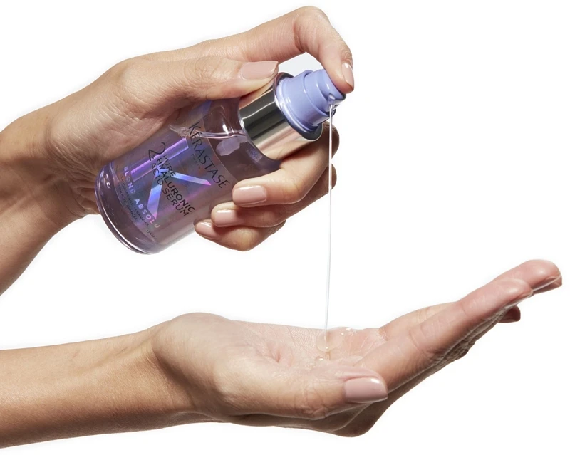 Selon la longueur des cheveux, appliquez 3 à 7 doses (1 dose = 1 pression de pompe) de sérum Kérastase Blond Absolu 2 % Pure Hyaluronic Acid sur les cheveux préalablement séchés à l’aide d’une serviette. Massez délicatement le cuir chevelu, puis appliquez sur les longueurs des cheveux jusqu’aux pointes. Ne rincez pas.