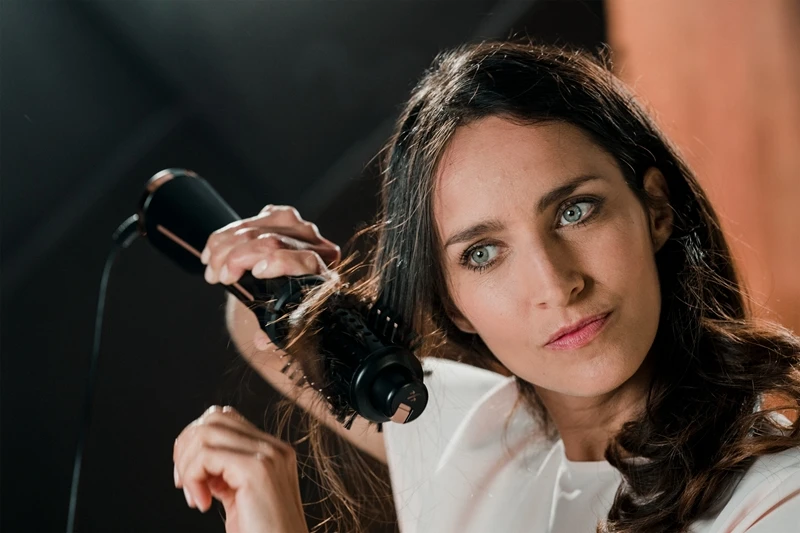 Placez une mèche de cheveux sur la brosse et faites glisser depuis la racine jusqu’à la pointe des cheveux. Répétez progressivement jusqu’à obtenir la coiffure que vous souhaitez.